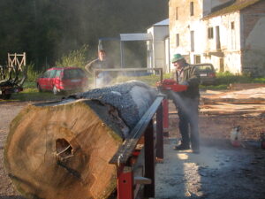 Hier wird die Säge noch von unserem geliebten Vater geführt.